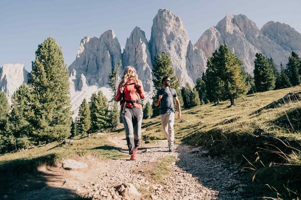 One of the most impressive hikes in the Dolomites runs below the imposing north faces of the Geisler Peaks and begins in Puez-Geisler Nature Park near Zans.